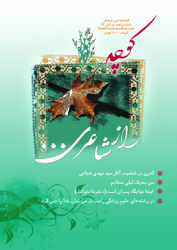 *داستان من به یک لیلی محتاجم و مصاحبه ی خانم دکتر کشوری را از دست ندین.*این کوچه هم از لحاظ دلنشینی مثل شماره های قبل یکی دو مطلب جالب و خاص داره که انتخابش را بر عهده مخاطبینش میذارم.با این حال من خودم شخصا این دو سه تا مطلبا خیلی دوست دارم.